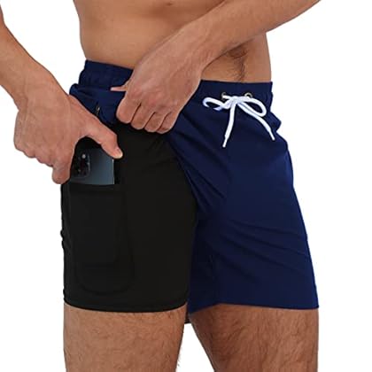 Arcweg Herren Badehose mit Kompression Badeshorts 2 in 1 Schnelltrocknend Schwimmhose 5.5" Badeshorts mit Innenhose Reißverschlusstasche Badehose S - XXL Marineblau L(EU)
